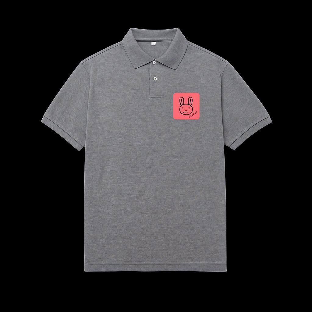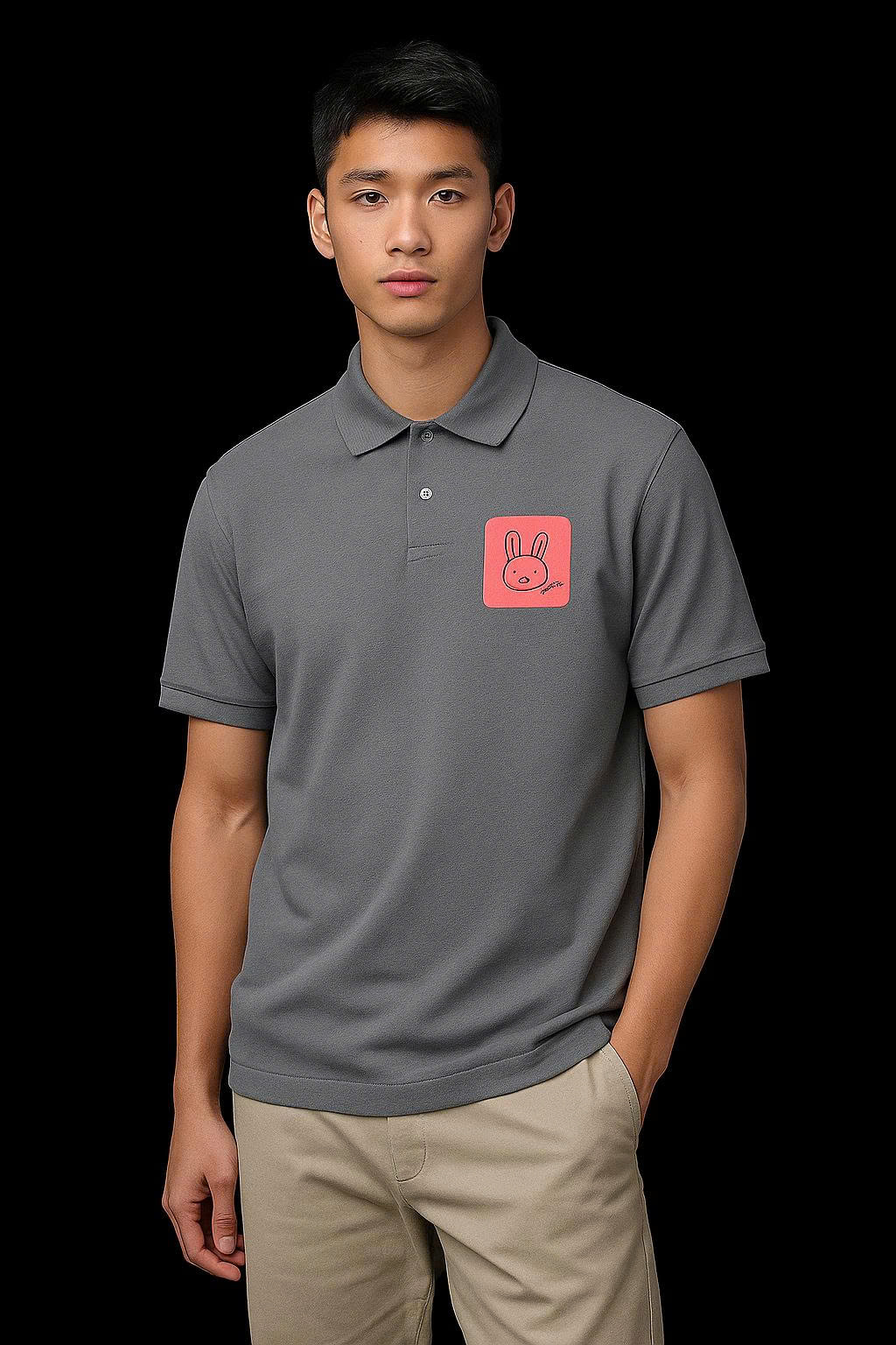 Áo polo xám basic với điểm nhấn là logo thỏ hồng đặc trưng của Street Rabbit đặt trên ngực trái. Thiết kế tối giản, thanh lịch nhưng vẫn giữ nét cá tính trẻ trung. Phù hợp đi học, đi chơi, hoặc phối theo phong cách smart-casual.